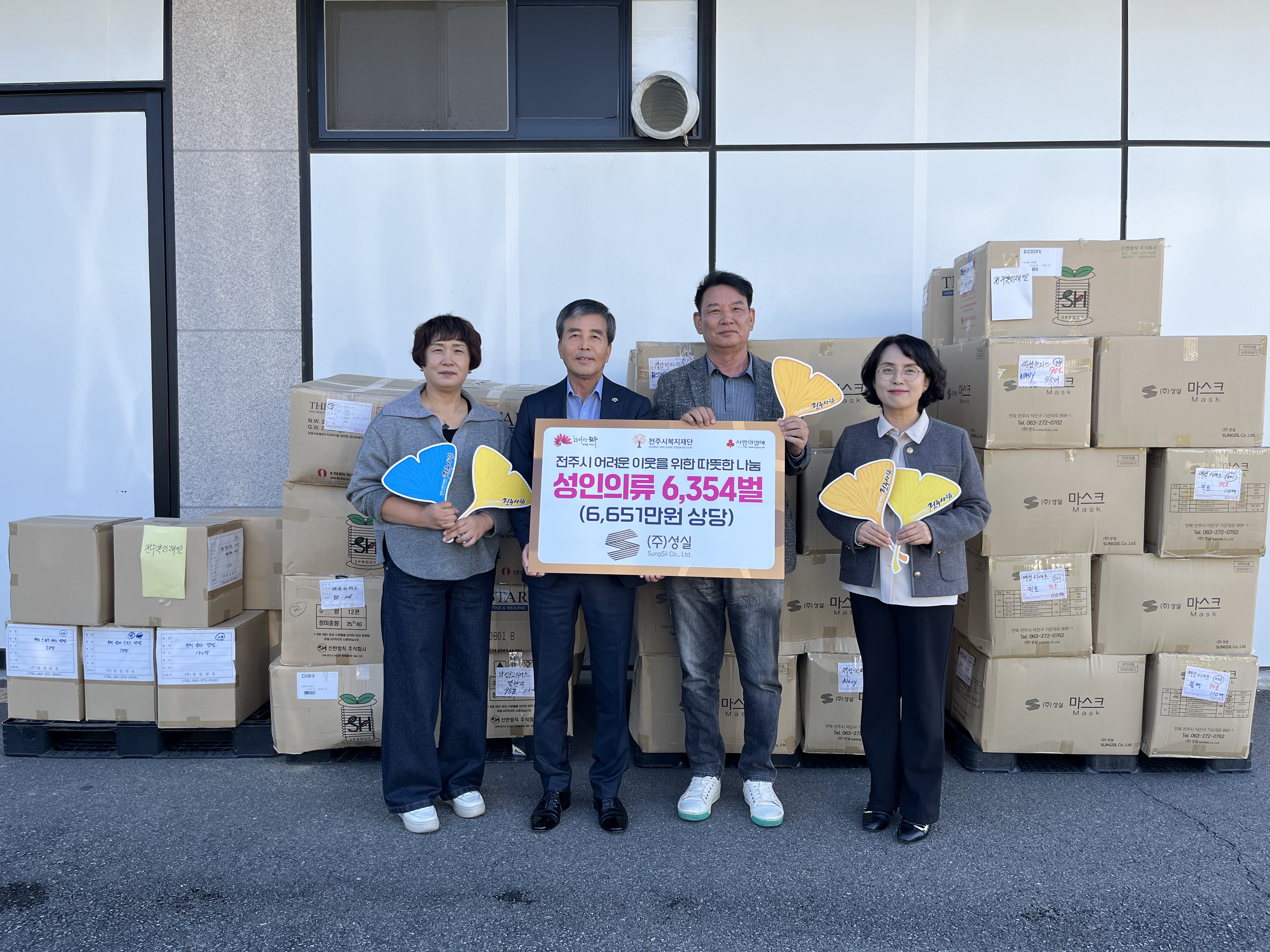 팔복동의 의류 제조기업 ㈜성실(대표 정태두) 이전주시복지재단(이사장 윤방섭)에