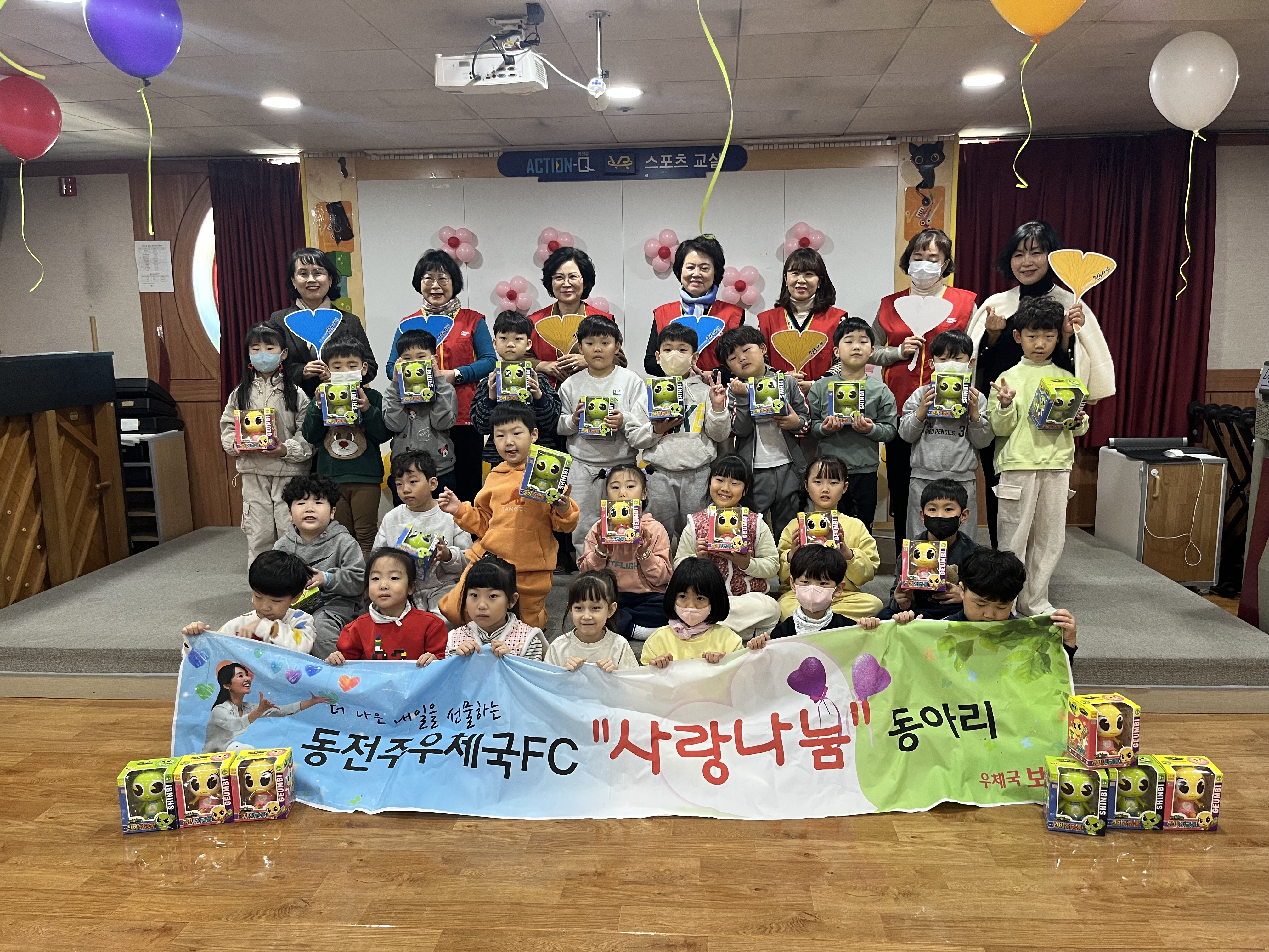 동전주우체국 FC, 동심어린이집에 저금통 기증…어린이들의 나눔 실천 기반 마련