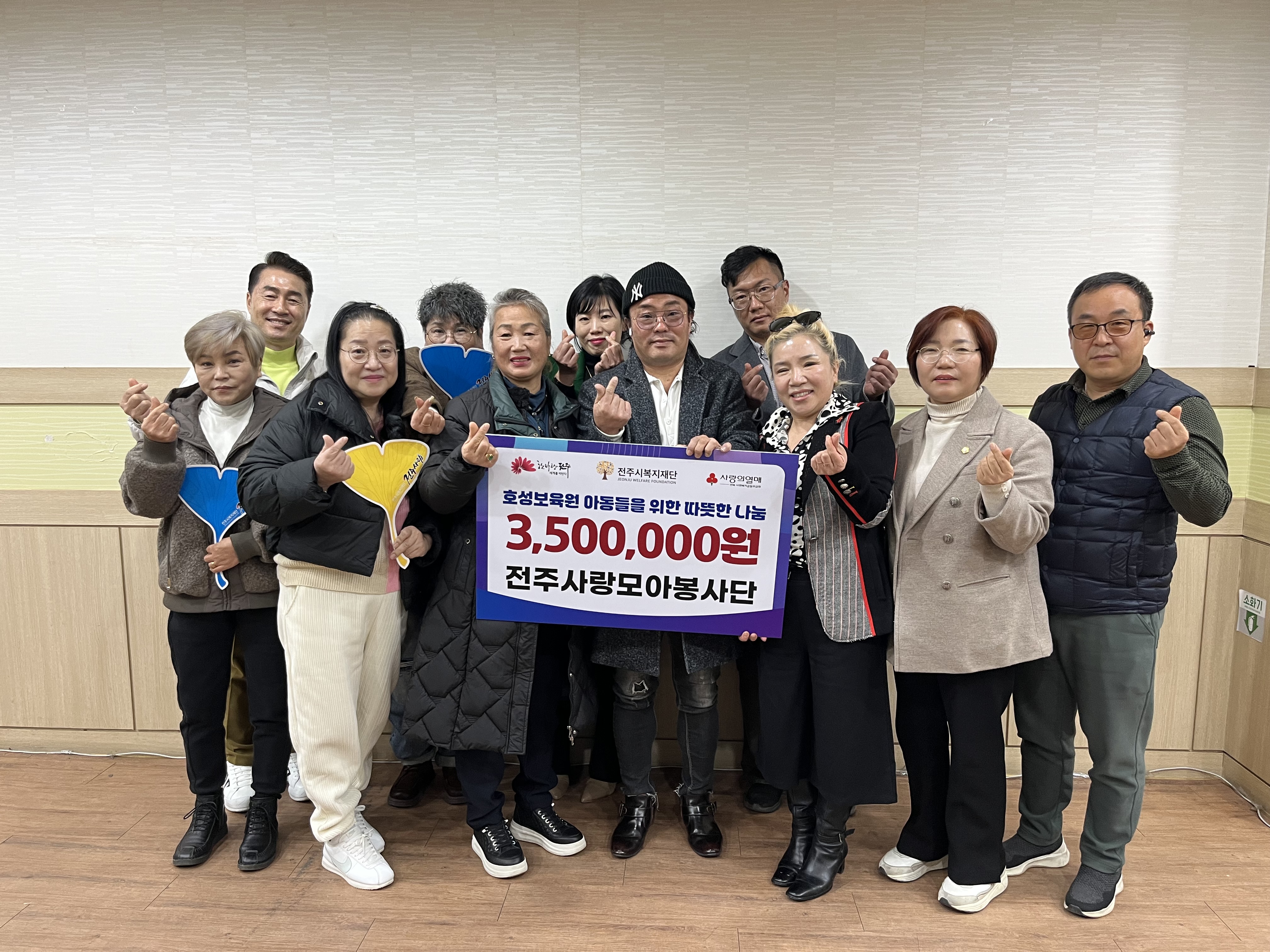 전주사랑모아봉사단이 8일 전주시복지재단에 성금 350만 원을 전달해 시설 아동들의 겨울 방한복 지원에 힘을 보탰습니다.