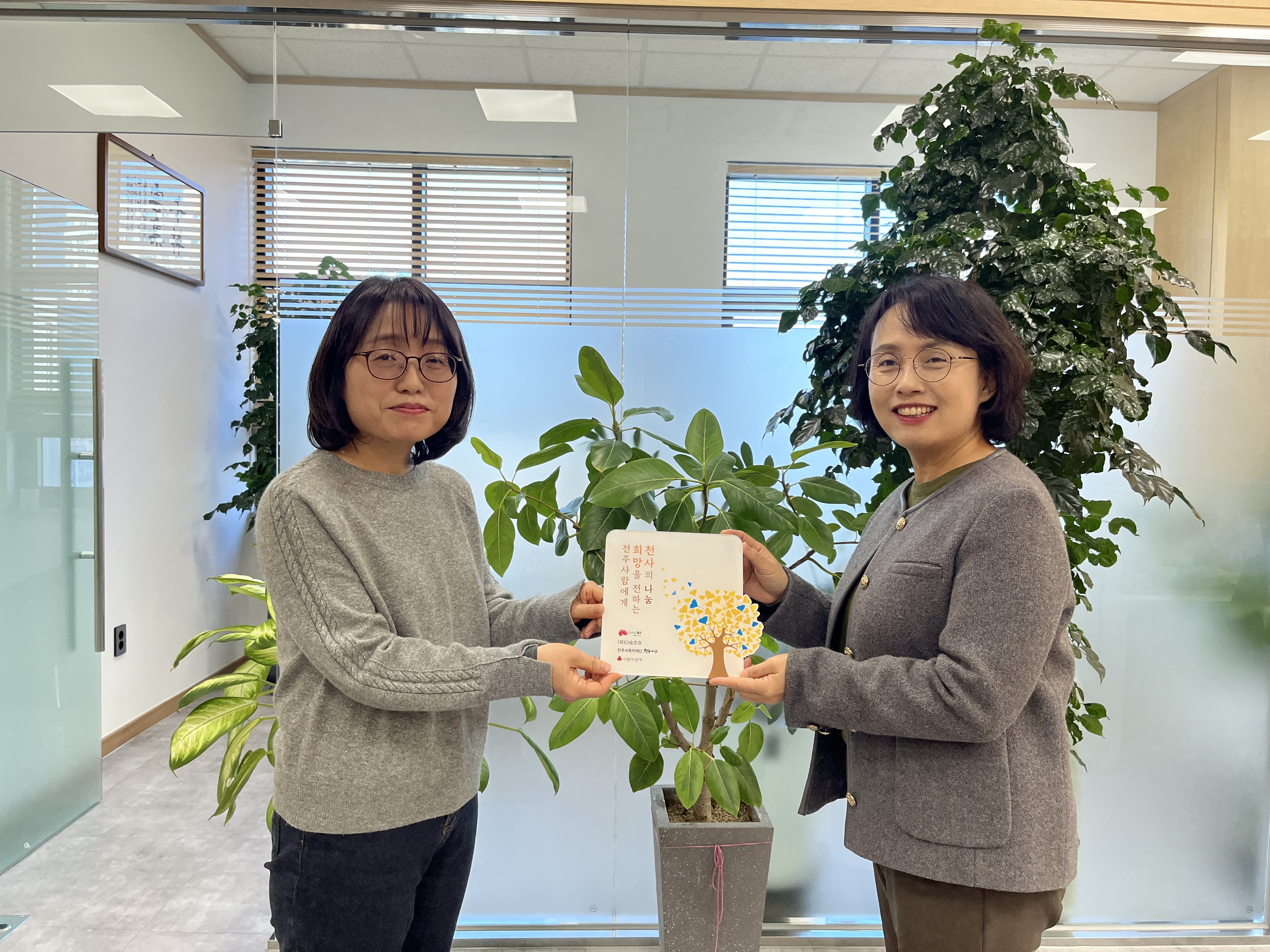 (유)다송조경(대표 양태원)은 전주시복지재단(이사장 윤방섭)에 혹한기 취약계층 지원을 위한 성금 100만 원을 기부해주셨습니다.