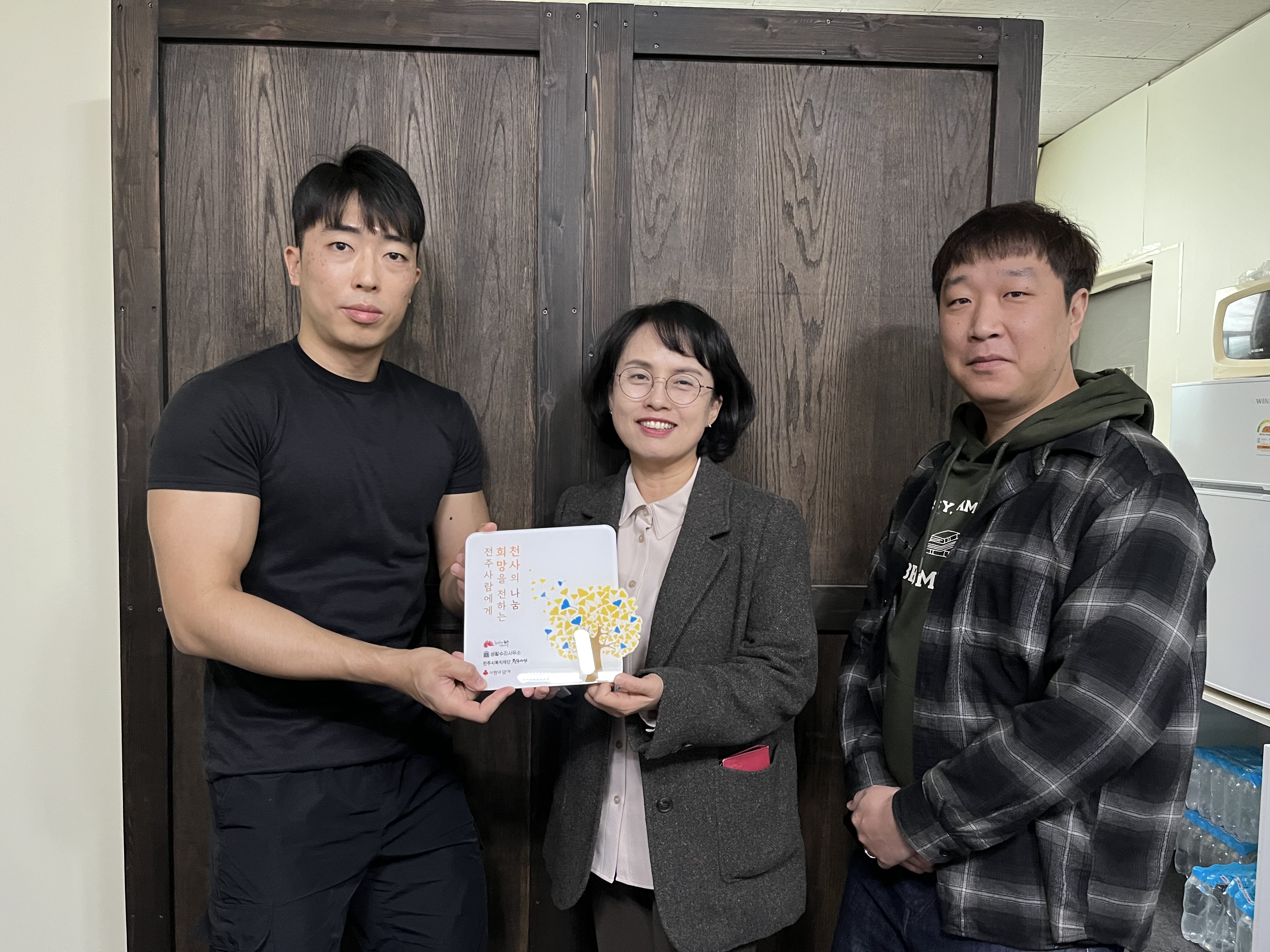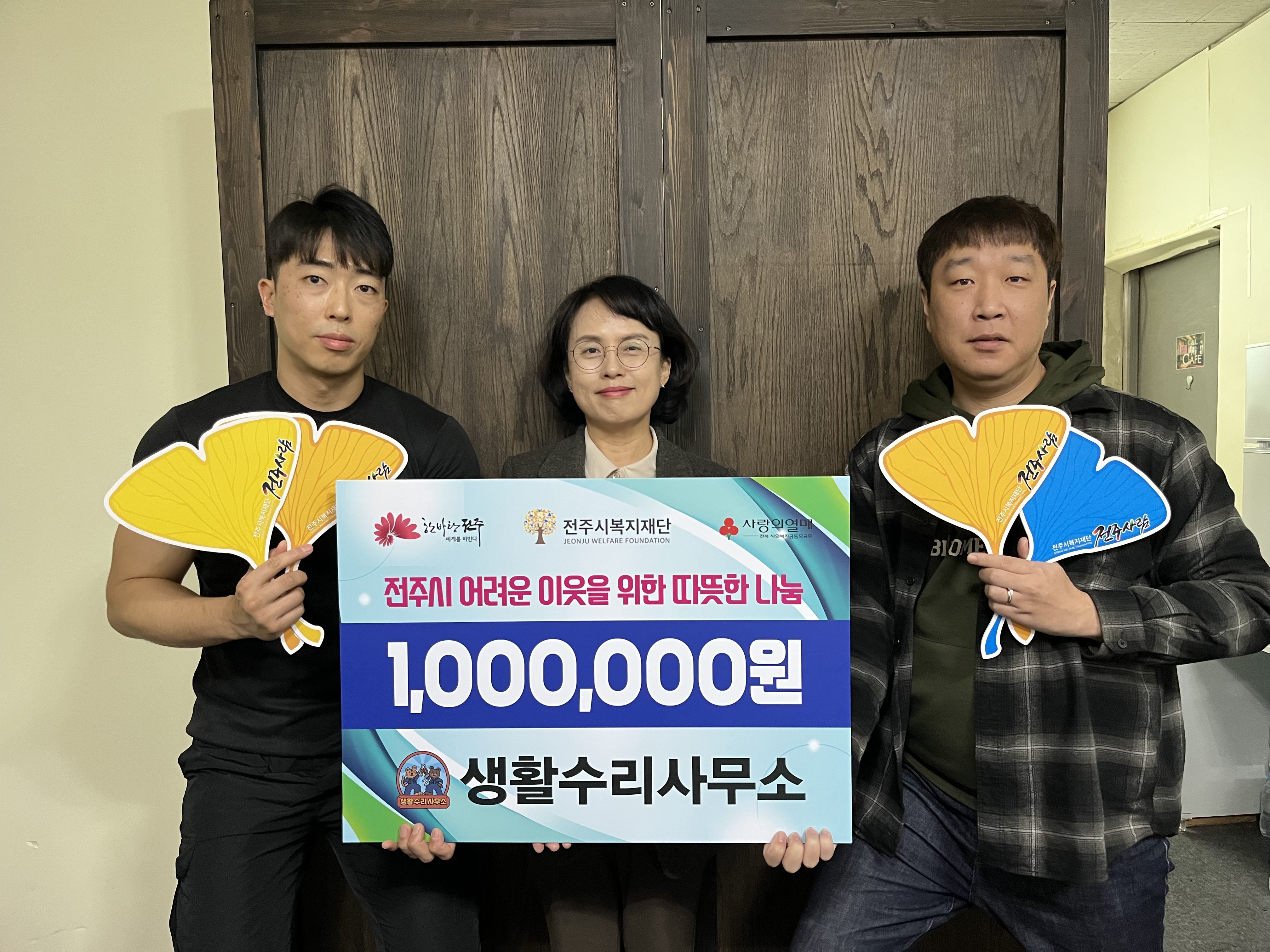 생활수리사무소(대표 김수만)는 지난해에 이어 올해에도 전주시복지재단 전주사람(이사장 윤방섭)에 취약계층 지원을 위한 성금 100만 원을 기부해주셨습니다.