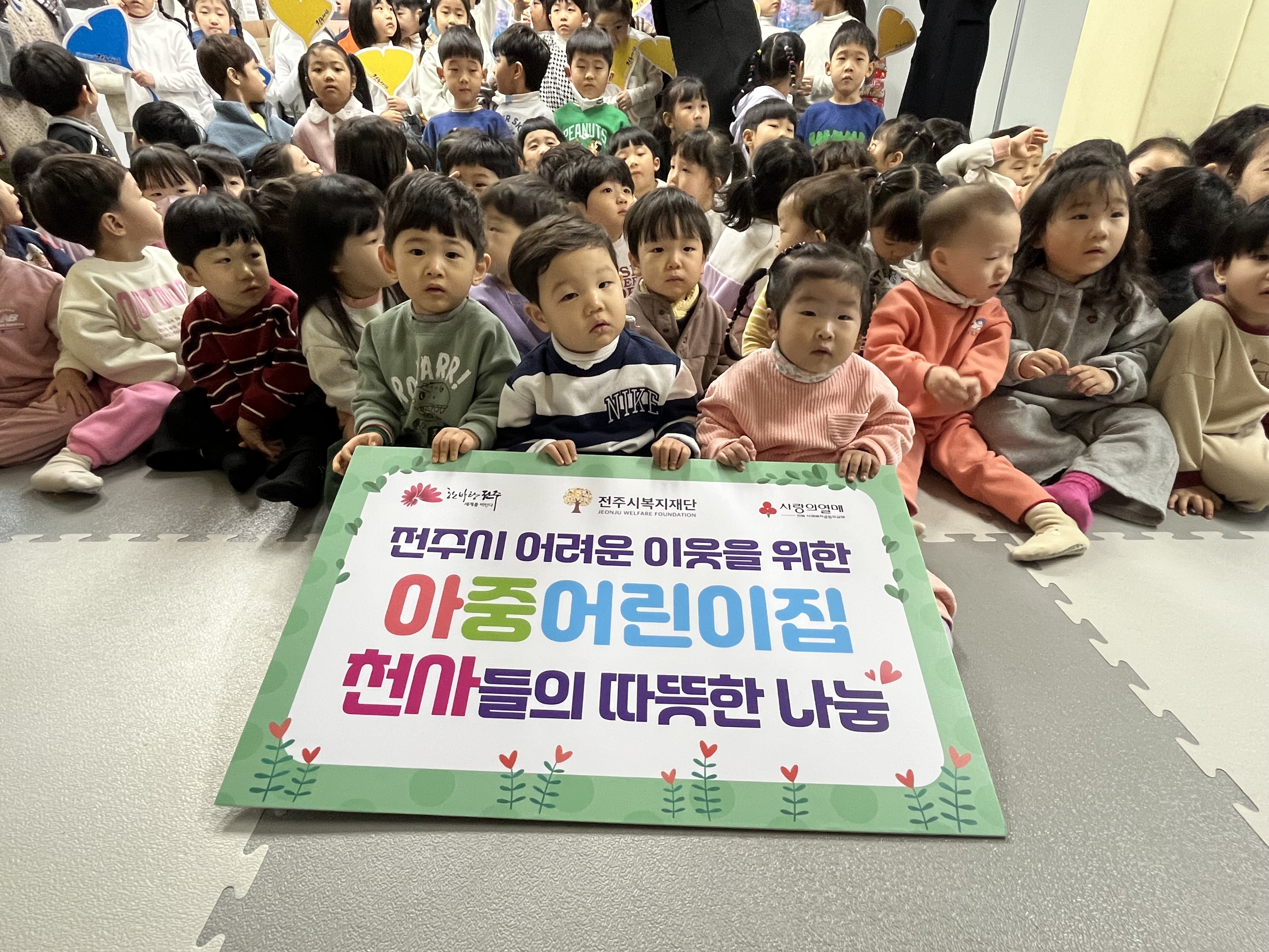 아중어린이집 원아들이 작은 손으로 정성을 모아 라면과 화장지, 백미 등 120만 원 상당의 후원물품을 추위로 어려움을 겪는 전주지역 취약계층의 겨울나기를 돕기 위해 기부해주셨습니다.