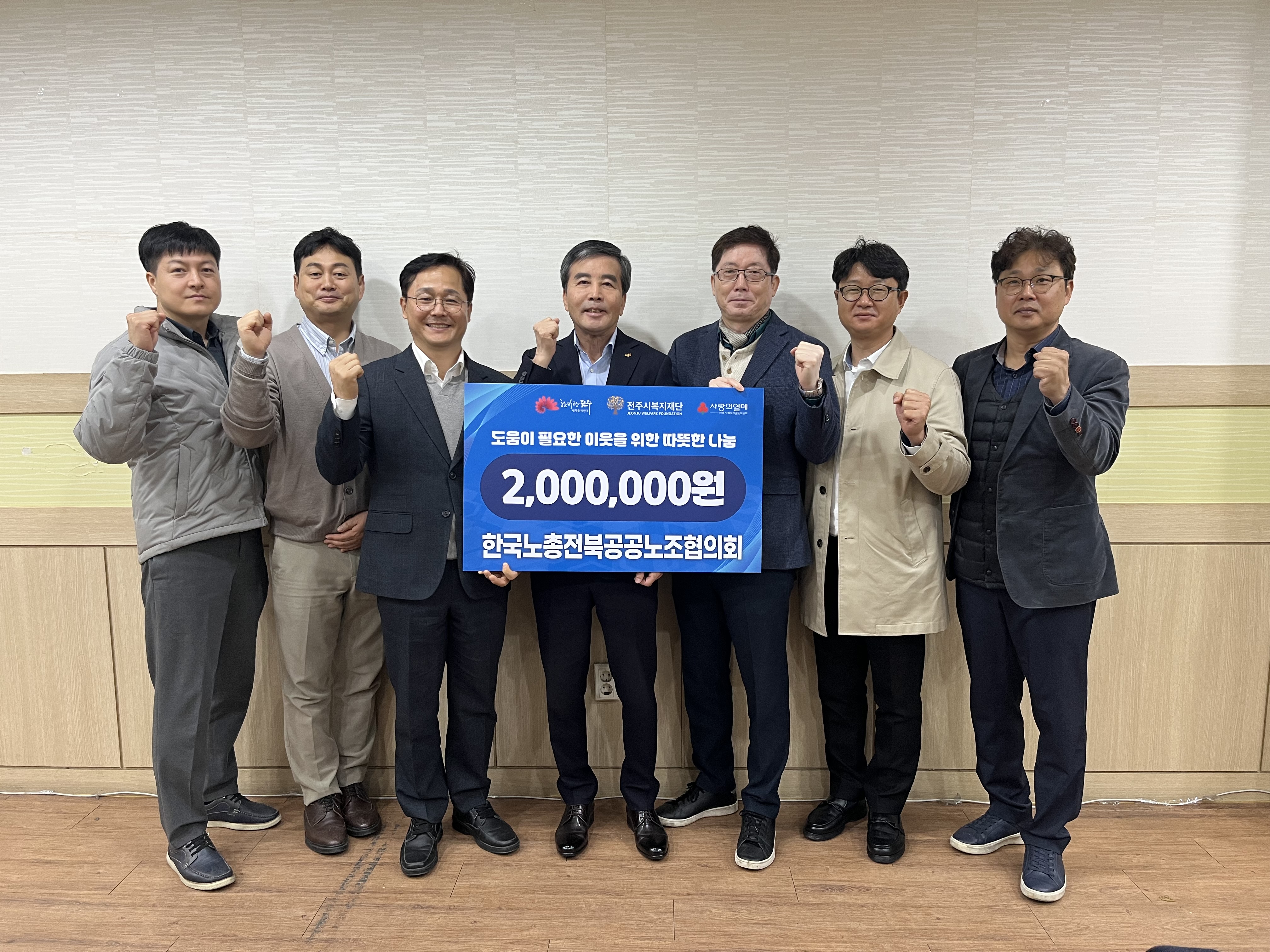 전북공공노동조합협의회는 지난해 7월 전북도와 전주시 공공노동조합의 협력과 상생발전을 목표로 설립됐으며, 공공의 가치와 사회적 책임 실천 활동의 일환으로 이번 성금 기탁에